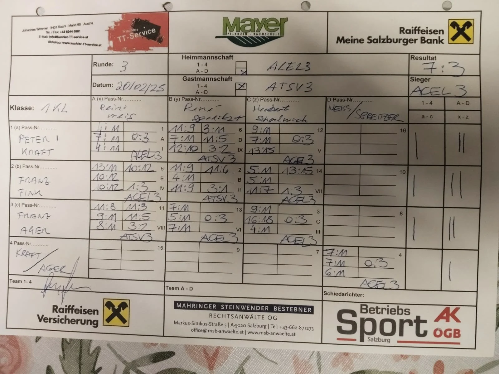 Runde 8: ATSV Salzburg 3 gegen UTTC Salzburg 9 - Ergebnis 5:5