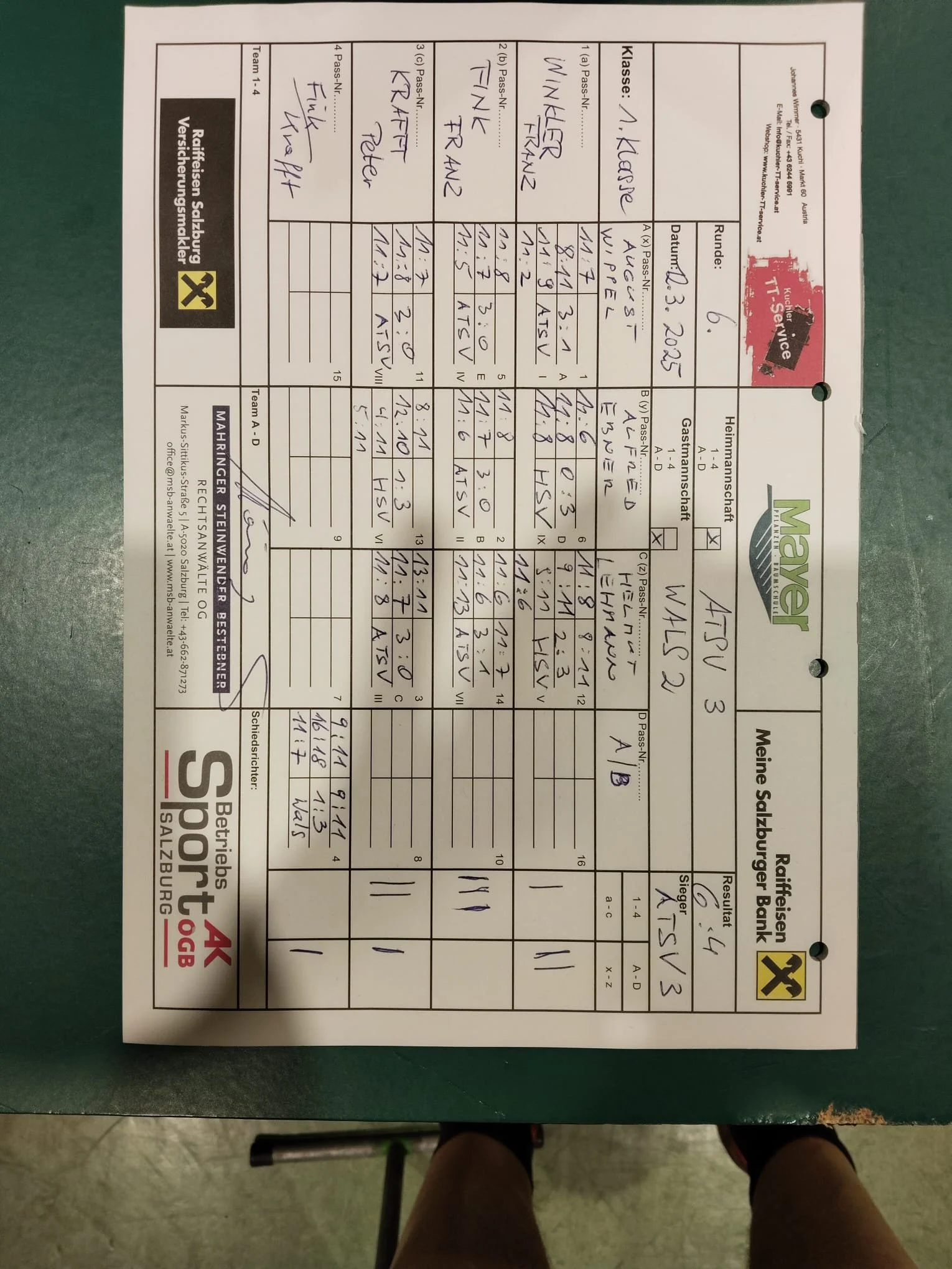 Runde 6: ATSV Salzburg 3 gegen HSV Wals 2 - Ergebnis 6:4